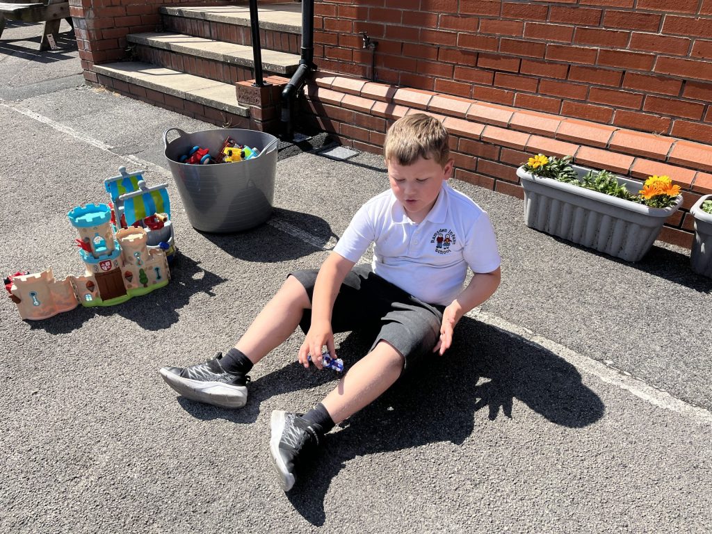 Monday to Thursday it is based at Greengate Juniors. Mrs Hartle from Ramsden walks the children down and stays with them. On a Friday it is based at Ramsden.